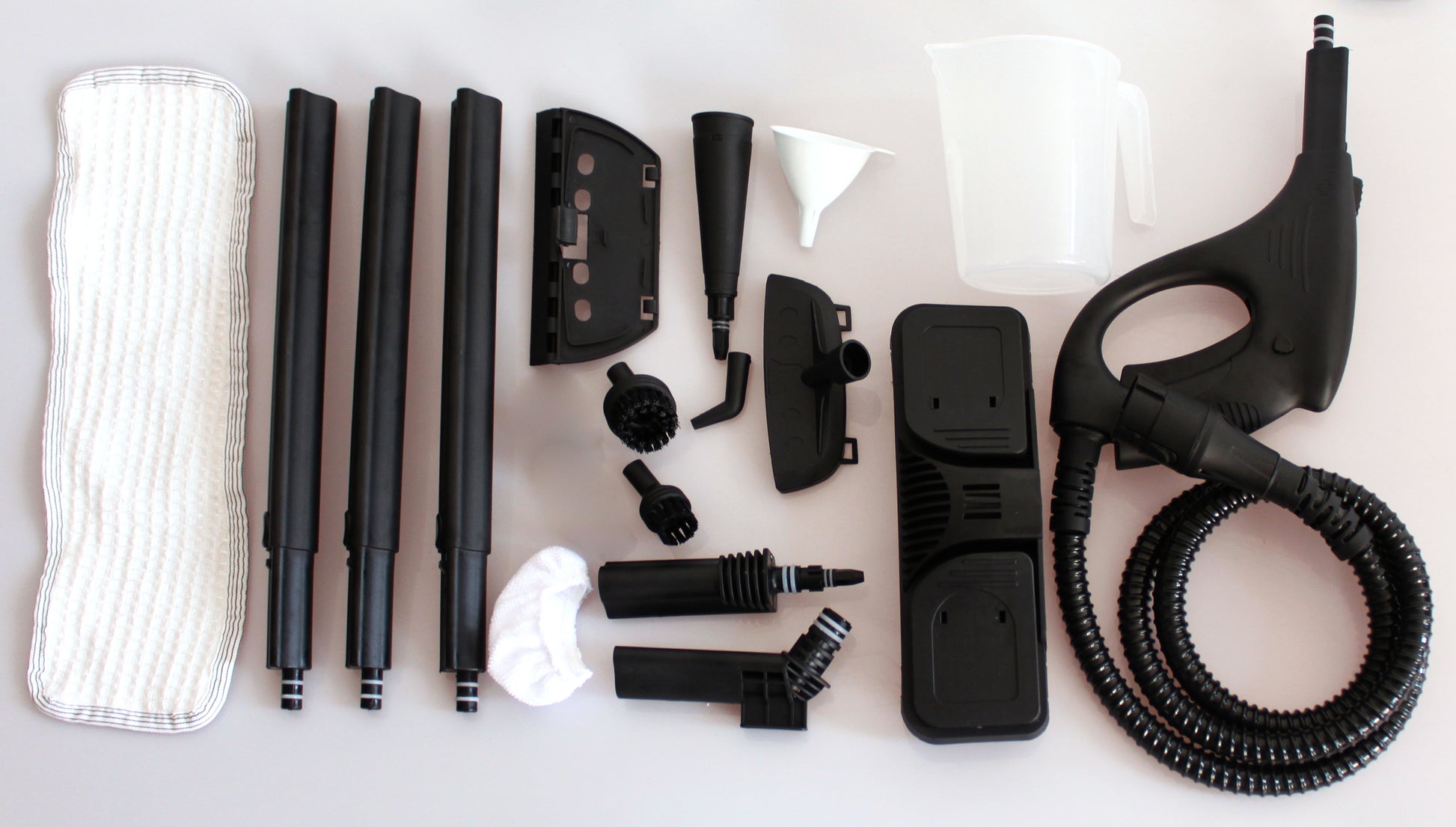 Standard multi-purpose accessory kit (nozzles, extension tubes, floor/brush tools, window squeegee, cloth covers, etc.). Optional Steam Iron Kit available for VSC28 Iron version. Final contents may vary by order.